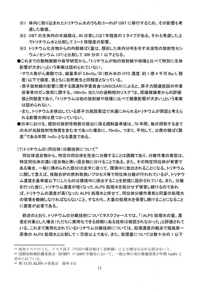 多核種除去設備等処理水の取扱いに関する小委員会報告書 2020年2月10日 pp17