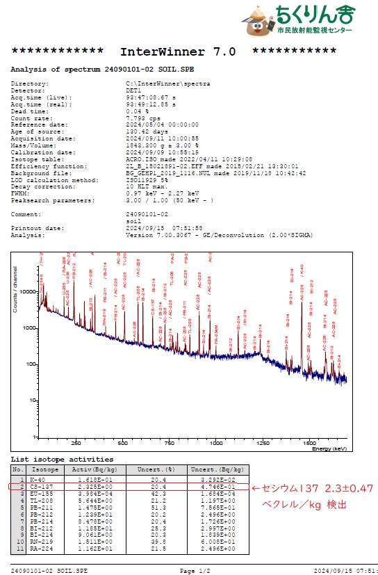 熊本県阿蘇のコシヒカリのご案内 水田土壌のセシウム137は1.6±0.34ベクレル/kg 2023年