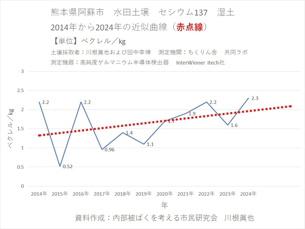 ⑪熊本県阿蘇市の水田土壌の放射能汚染(大気圏内核実験由来+東電福島第一原発事故か)