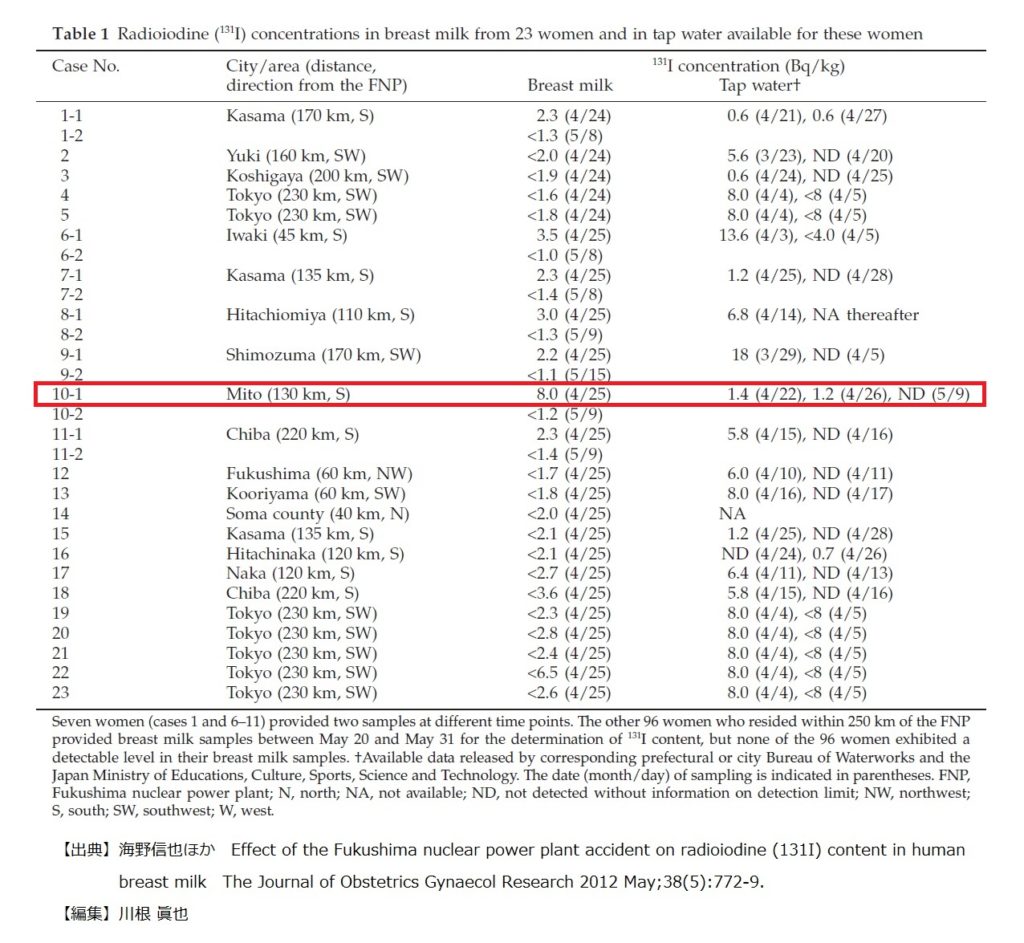 power plant accident on radioiodine (131I) content in human breast milk The Journal of Obstetrics Gynaecol Research 2012 May;38(5):772-9.
