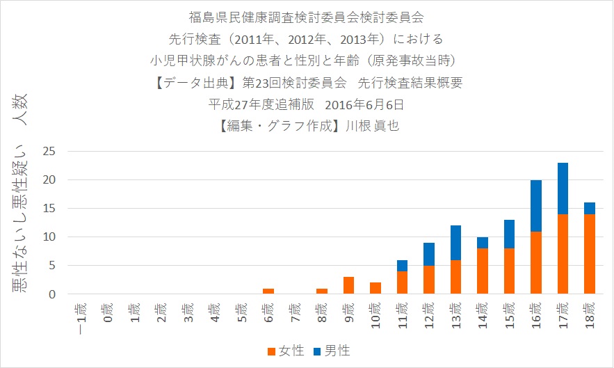 髙野徹氏の青年から微細な甲状腺ガンがあるので、福島県の甲状腺ガンは原発事故の放射線の影響ではない。あえてスクリーニング検査で甲状腺ガンを見つけて、手術することは本人に“がん患者”であるというレッテルを貼ることになり、進学、就職、結婚、出産においてハンディを負うことになるからデメリットの方が大きい、と言う主張は、ベラルーシ、ウクライナ、ロシアの住民の健康被害を調査してから、言って欲しいです。現在でも高放射能汚染地帯で地元野菜や牛乳、きのこを食べている住民は甲状腺ガンを発症しています。40代で多臓器ガンにかかって亡くなる人がいます。女性は妊娠できず、やっと生まれても白血病で亡くなるケースがあります。高放射能汚染地域で起きているのは、原発事故から10数年間の小児甲状腺ガンだけではありません。さまざまなガンや白血病、不妊、そして先天的奇形です。甲状腺ガンは原発事故から34年たった現在でも多発しています。原因はヨウ素131ではなく、食べ物からまたは塵・ほこりを吸い込んだ時に入るセシウム137やストロンチウム90でしょう。かの地の住民の健康被害を見ないことをするのは簡単です。International Dose Response Society などの論文だけを読んでいればいいのですから。