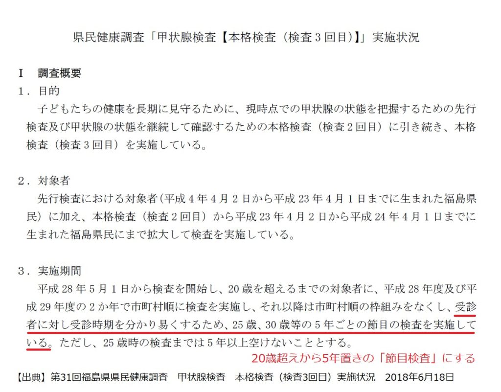 これを福島県は「受診者に対して受診時期を分かりやすくするため」と称していますが、2年起きにやった方が忘れないのは当たり前です。東京パラリンピック、オリンピック前に福島の小児甲状腺がんが爆発的に増える、という事態が発覚しないように作り出したトリックです。