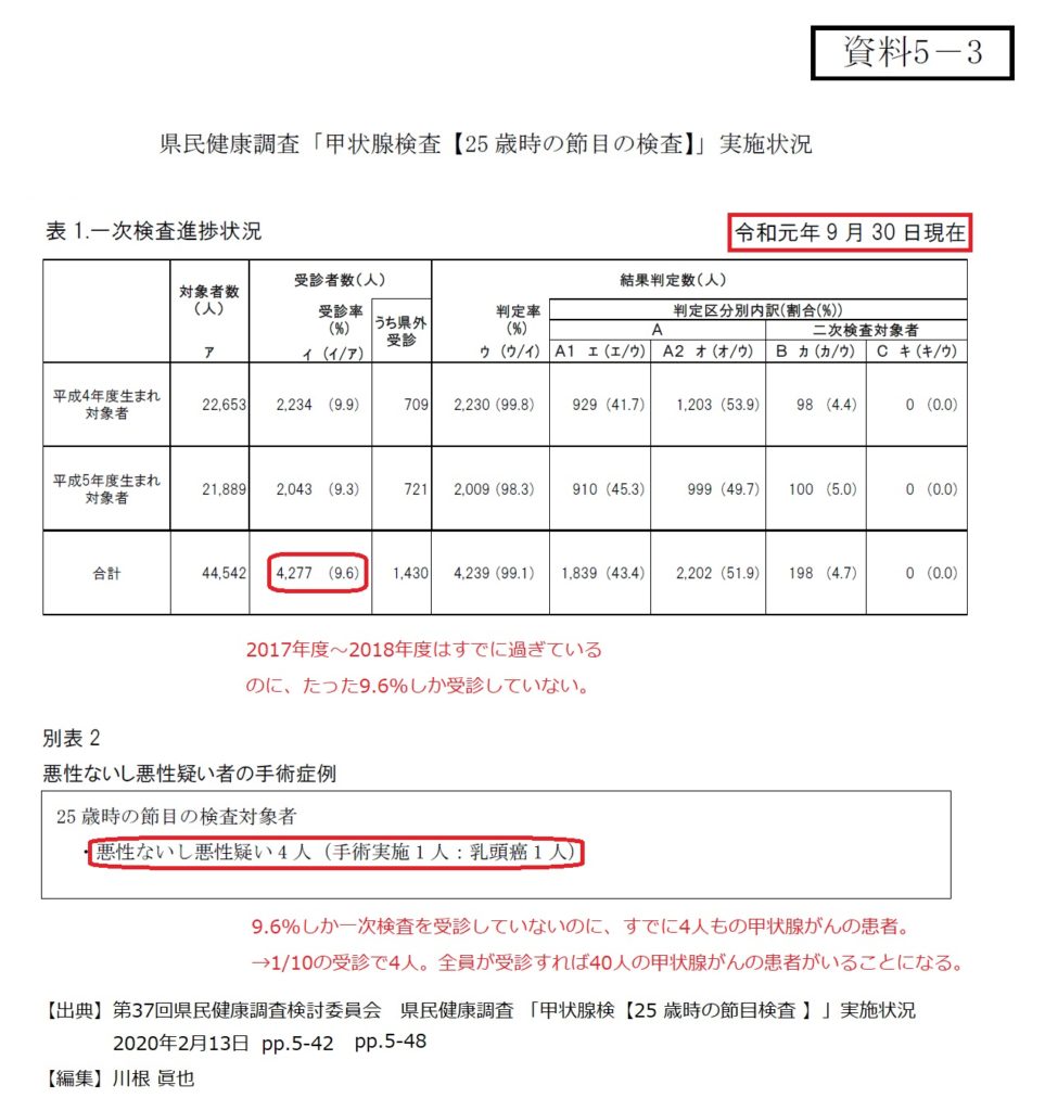 2.福島県甲状腺25歳時検診、受診率9.6%で4人の甲状腺がん。ただちに20歳以上のリスクグループの全員検査をするべきだ。 報告:川根 眞也
